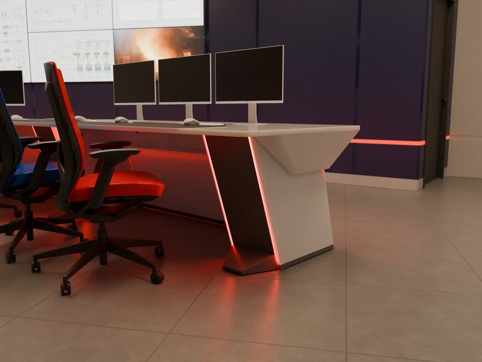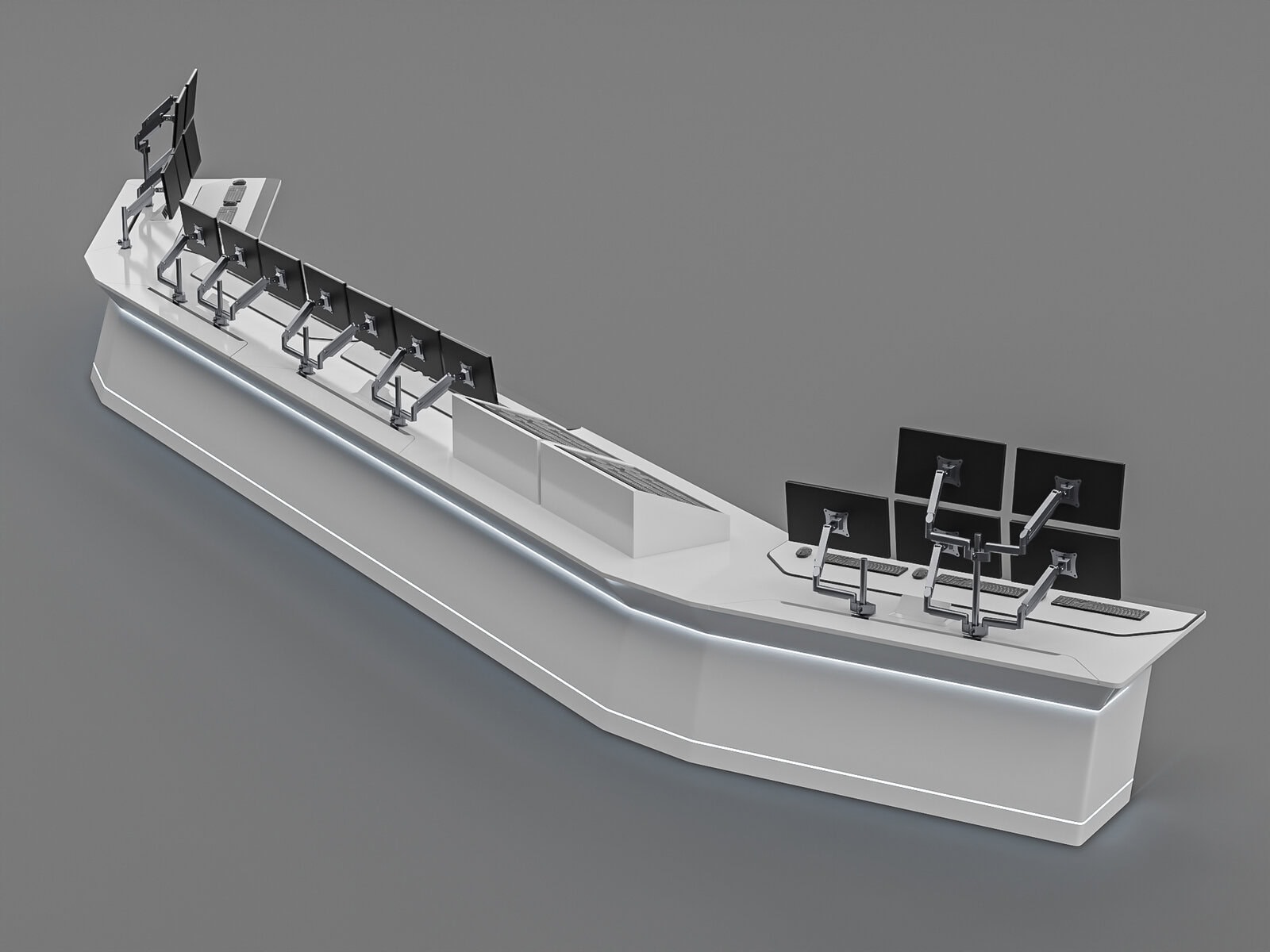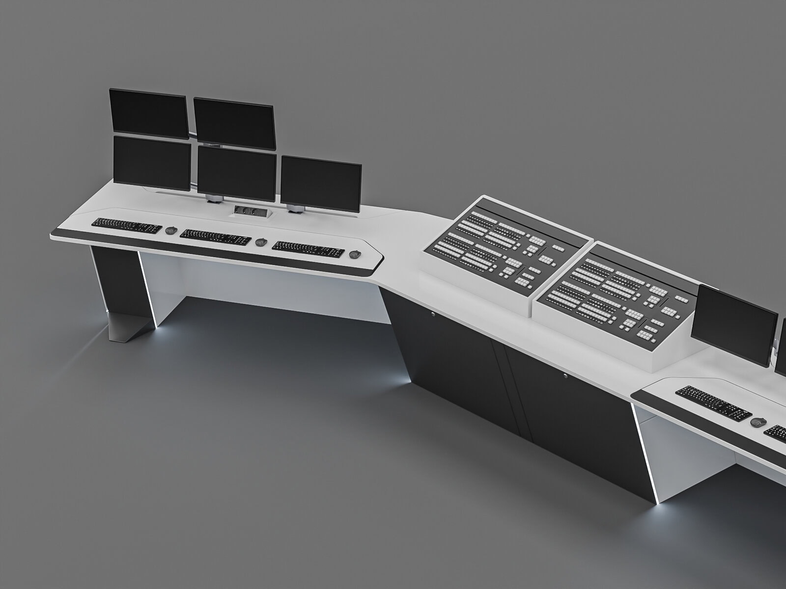 Task: Develop a modern design for a control desk with several important constraints: very tight deadlines covering the entire project from design to installation; the desktop had to be monolithic. In addition, once the contract was signed, it was necessary to oversee production, delivery, and installation.